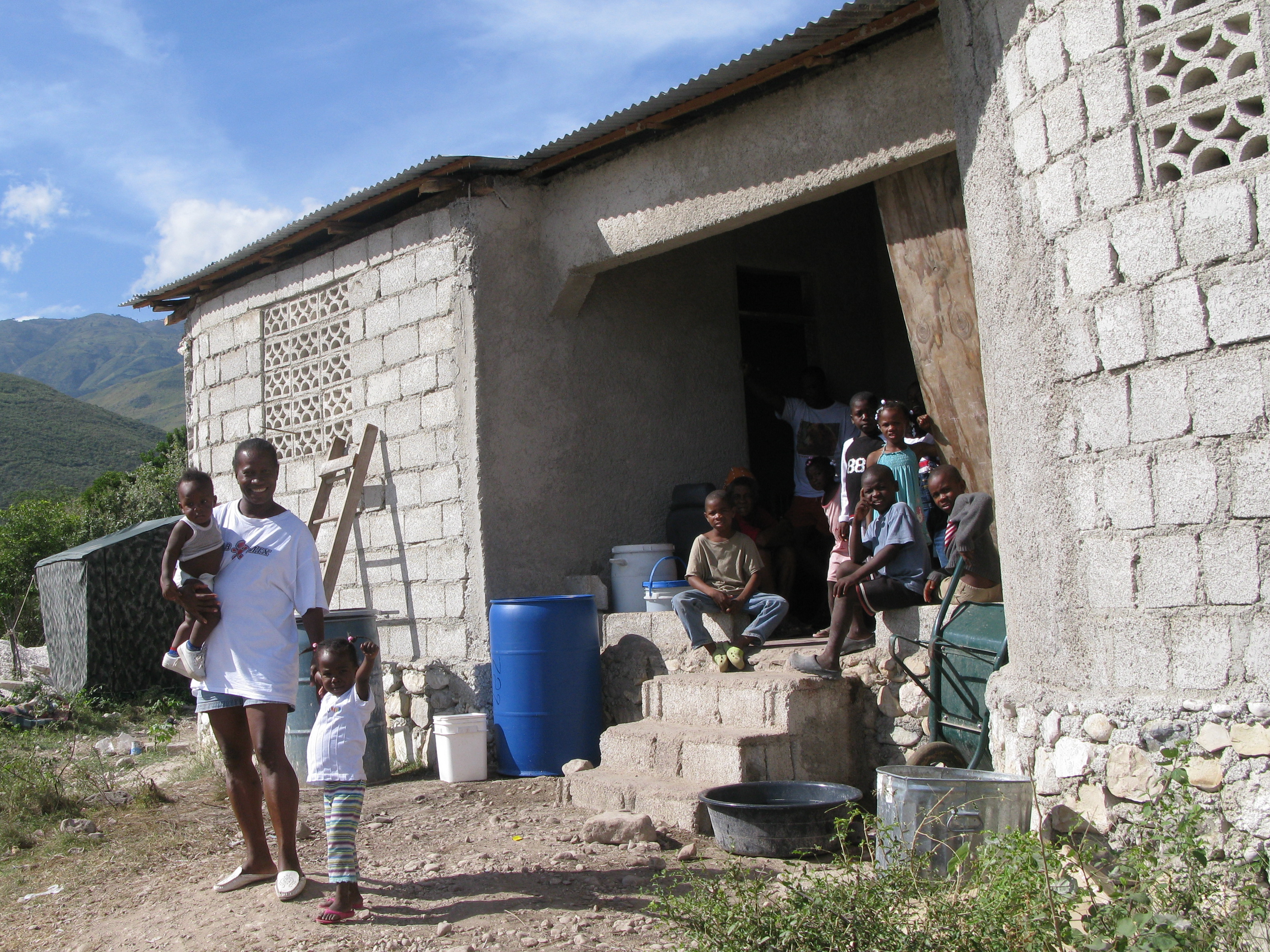 Yvrose in front of her two rented rooms