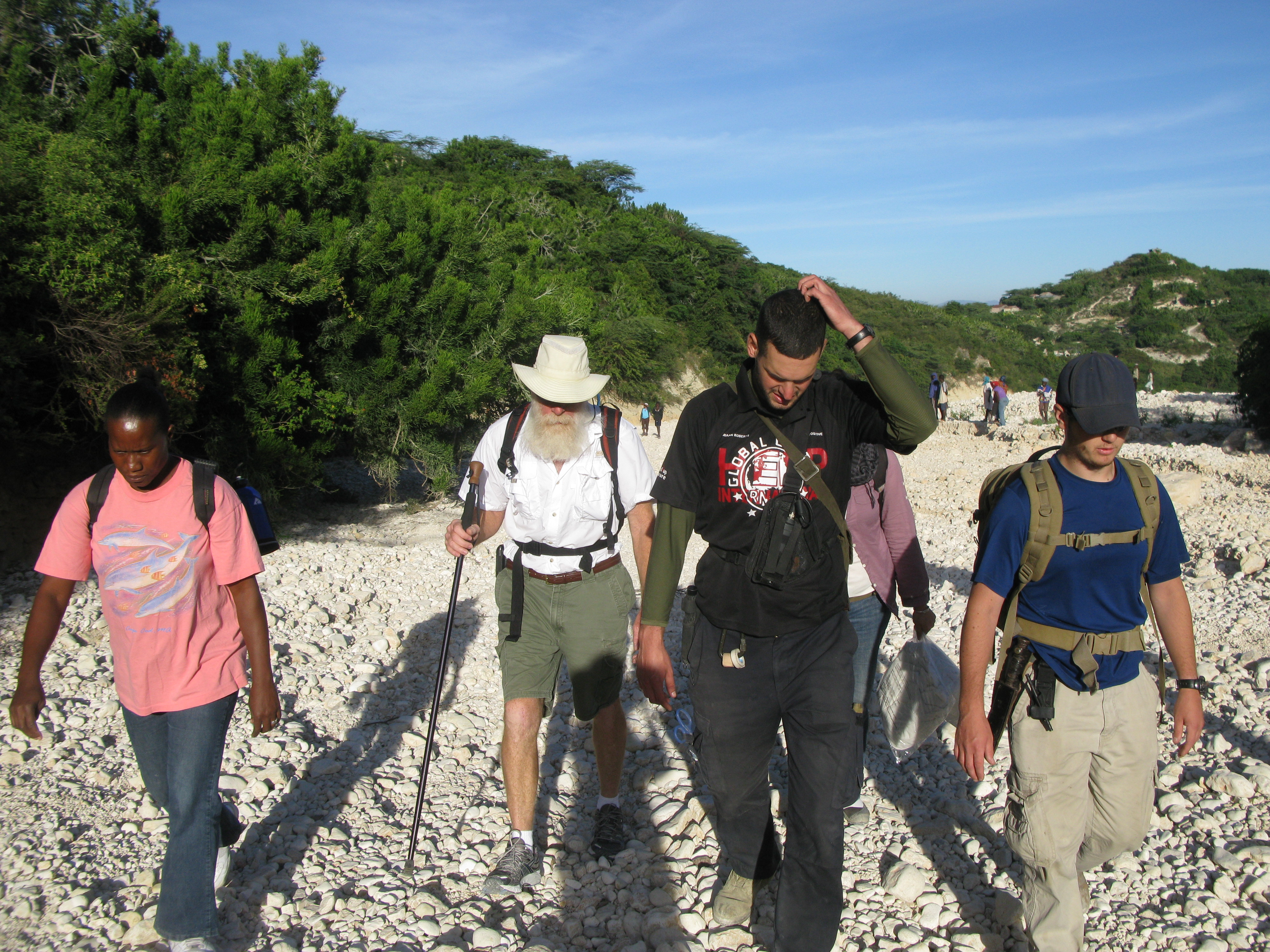 Yvrose and Bill headed up the riverbed with the Global Dirt team