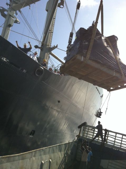 The next day, all the organizations receiving things on the ship went together to hire the barge we had discovered earlier. Praise God for that connection. The items were safely offloaded and taken to shore, still in 6 – 8 foot seas, a task that would have been next to impossible to accomplish with the small wooden fishing boats they had planned on using.