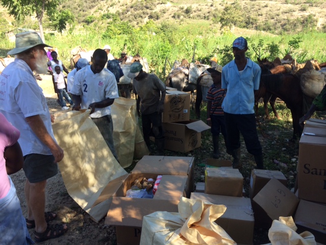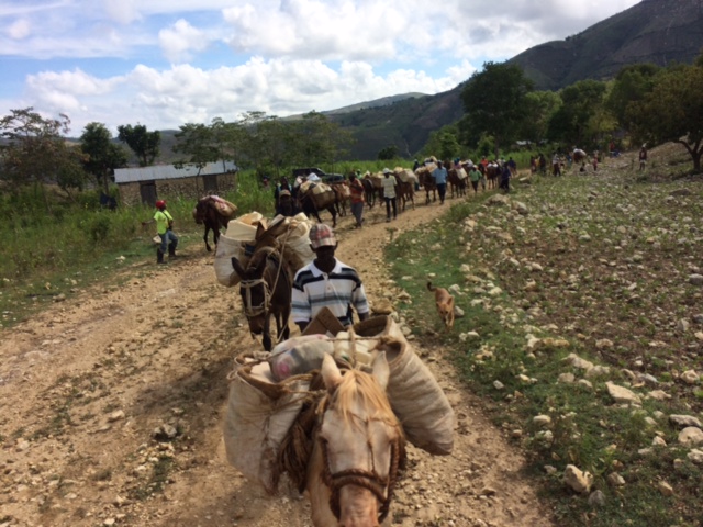 Only three mules at the rendezvous but while we wait for the others we begin to pack all the gifts and books and Bibles into the big plastic sacks to tie on the mules.