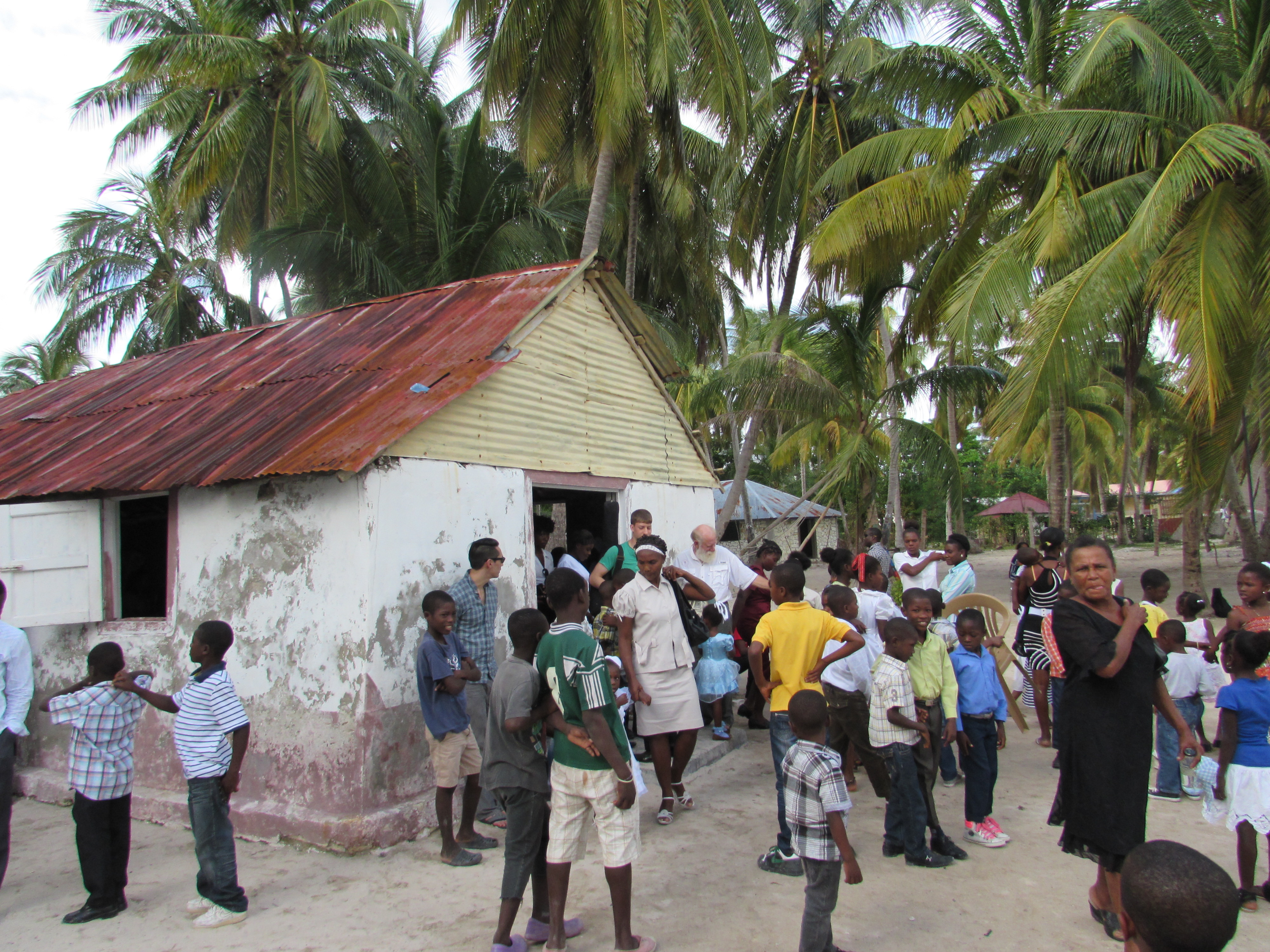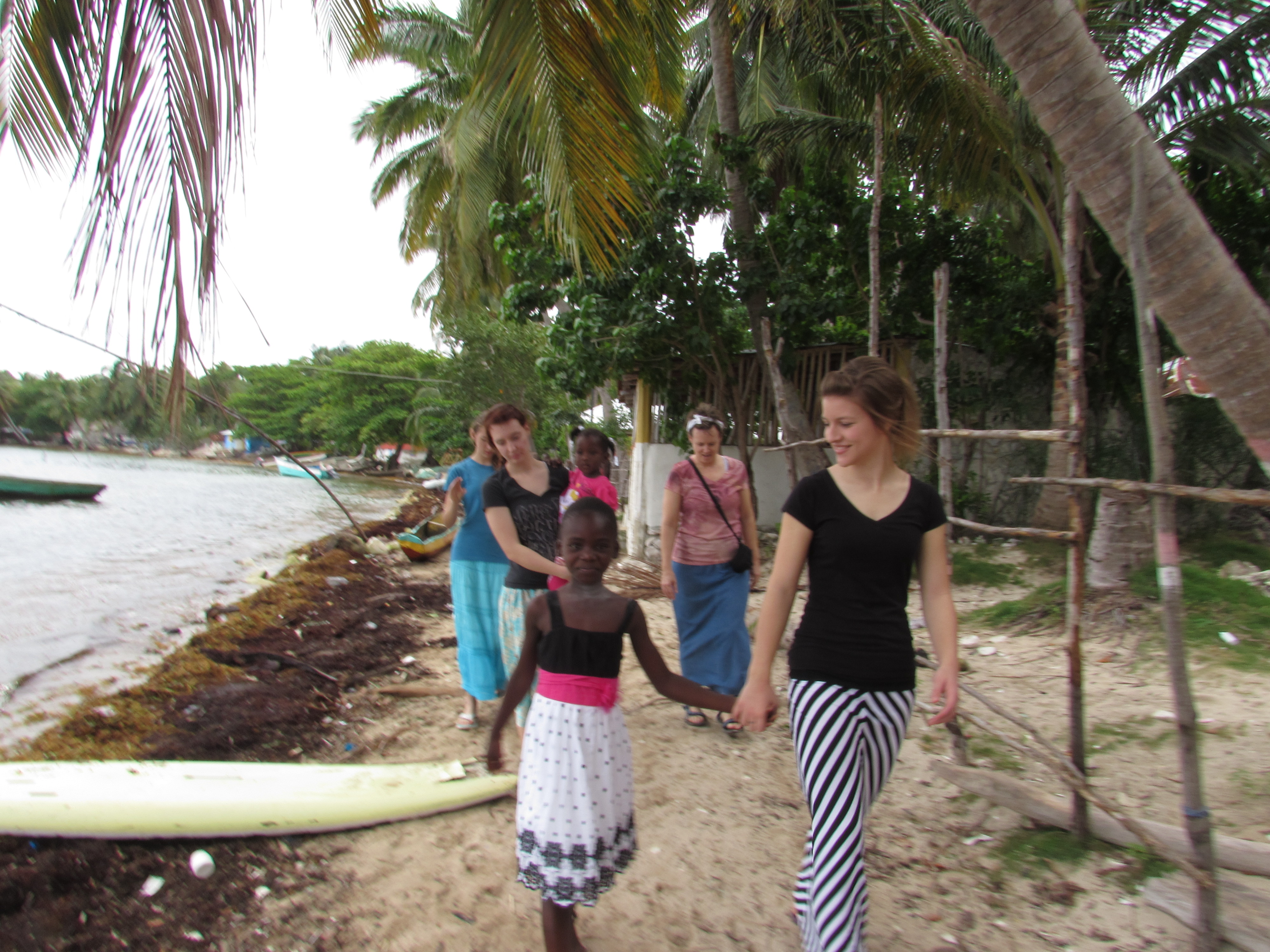 “Around 20 kids showed up Sunday morning all dressed beautifully for church. Most were wearing the clothes we gave them yesterday. What was weird was they all smelled so good! I just wanted to keep sniffing them. We’re the only ones with a “shower,” a little semi-closed off room with a drain, a 5 gallon bucket, a bowl, and a spigot. They have nothing that we know of. Anyway, we headed off to the church, just a short walk along the beach.