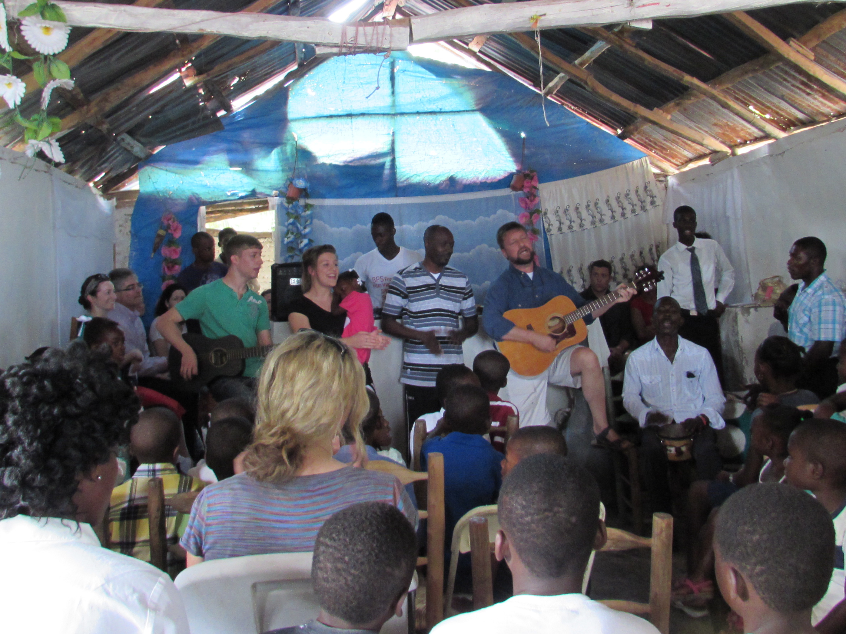 We worshiped for a long time. Mostly they led the singing but each group of blancs sang a song to them. (There was a visiting American medical team. – J) Then their preacher named Monclaire got up and spoke. I’m not exactly sure what all he said because the translator spoke so quietly. Something about how God loves us no matter our color or where we are from. It was really neat. Than a man from the other blanc group got up and spoke, then Alan did and it was just good fellowship.