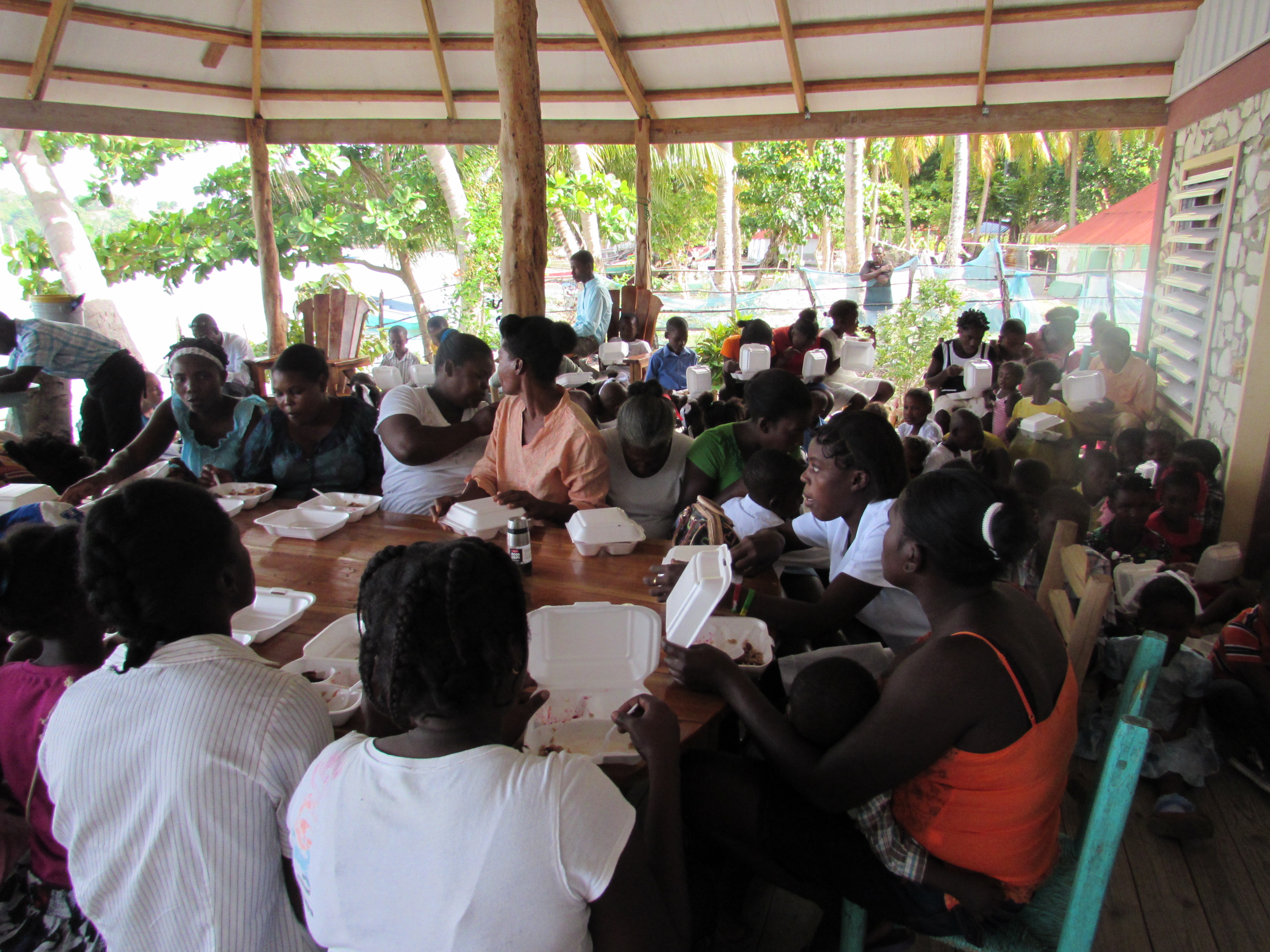 We want to thank the First Christian Church of Oswego, KS who gave a gift to help purchase the food for the dinner. Meat is not cheap on Ile a Vache and their gift enabled us to buy the pig and the goat plus some of the rice for the dinner. God provides through His people for the things JUST MERCY does in His name and we are grateful!!