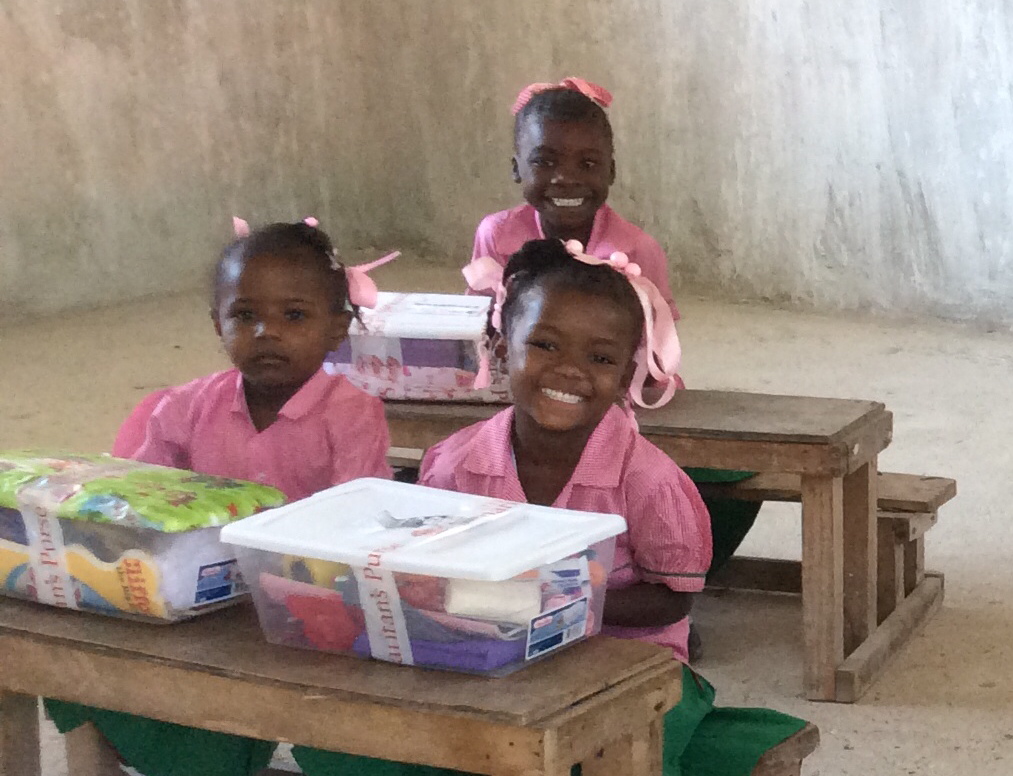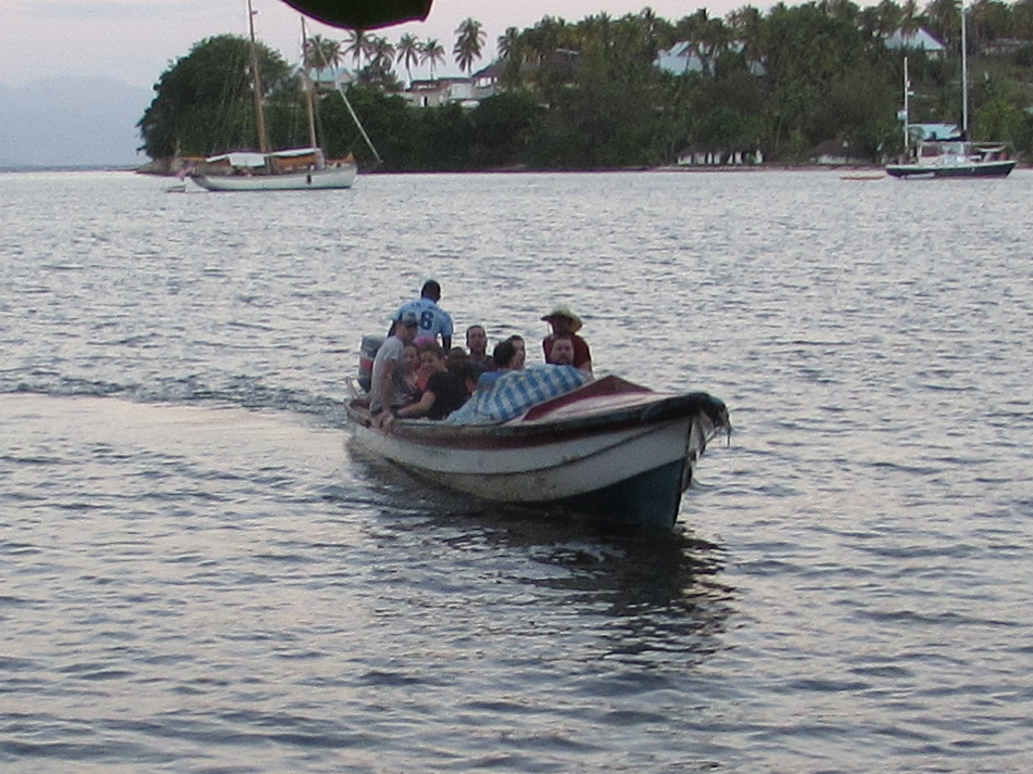 Later that week, we took the gifts out to the boat on the dinghy and then around the island to the village of Grande Sab where they were to be distributed at the school there. After ferrying the gifts to shore, students came to take them to the school. We were concerned because we did not have enough gifts for all the children enrolled at the school. Hannah March tells the tale.