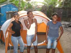 On Saturday Bill and Jesse drove into Port au Prince (PAP) and took 32 tents to Dottie Diehl, a woman we were put in contact with through Doug Gripka, the Baptist pastor in Newtonia near our home, who has gone to Haiti on mission trips for years. Dottie runs a guest house for visiting mission workers and also works with a school for poor children in PAP. Many of her students are living in so called “tent cities”, mostly with only tarps and sheets for shelter. She was very excited about being able to give some of the children’s families a tent to put up.