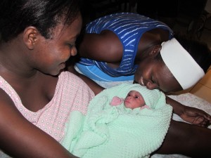 On Sunday, Bill got a call from Sherlie’s sister, Rachelle, on the outskirts of Port-au-Prince. She was in labor and could not afford to go to a PAP hospital. Bill drove to PAP in Yvrose’ car and picked her up to bring her out to HCM’s obstetrical clinic here in Fonds-Parisien. As he was driving she was breathing through contractions and Bill was wondering if he was going to have to deliver the baby on the street!