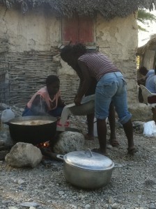 The fellowship dinner went well. This time we cooked 50#s of rice, 10#s of beans, and made fish sauce out of canned mackerel! Believe it or not, YUMMYYY! We had food for everyone, although there were so many there, at the beginning, it was not a foregone conclusion. You can imagine, in Haiti, what a mass of confusion such an undertaking can precipitate!