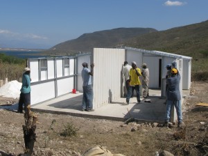 I arrived in Haiti on the 26th after an overnight delay in Ft. Lauderdale. They were pouring the second foundation that day. The next day we poured the area between the two. Rod brought out the insulated panels for the first house in the afternoon. The next morning he brought out the panels for the second house and his crew. By the time Bill and I got there, the first house was up! It took another hour or so to apply all the metal trim pieces but it was amazing how fast it went.